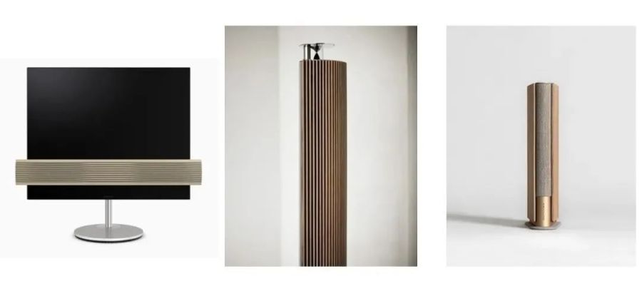 b&o的音箱设计,将木材、皮革、织物融入音箱产品的设计中,营造最舒适的听音乐的氛围。