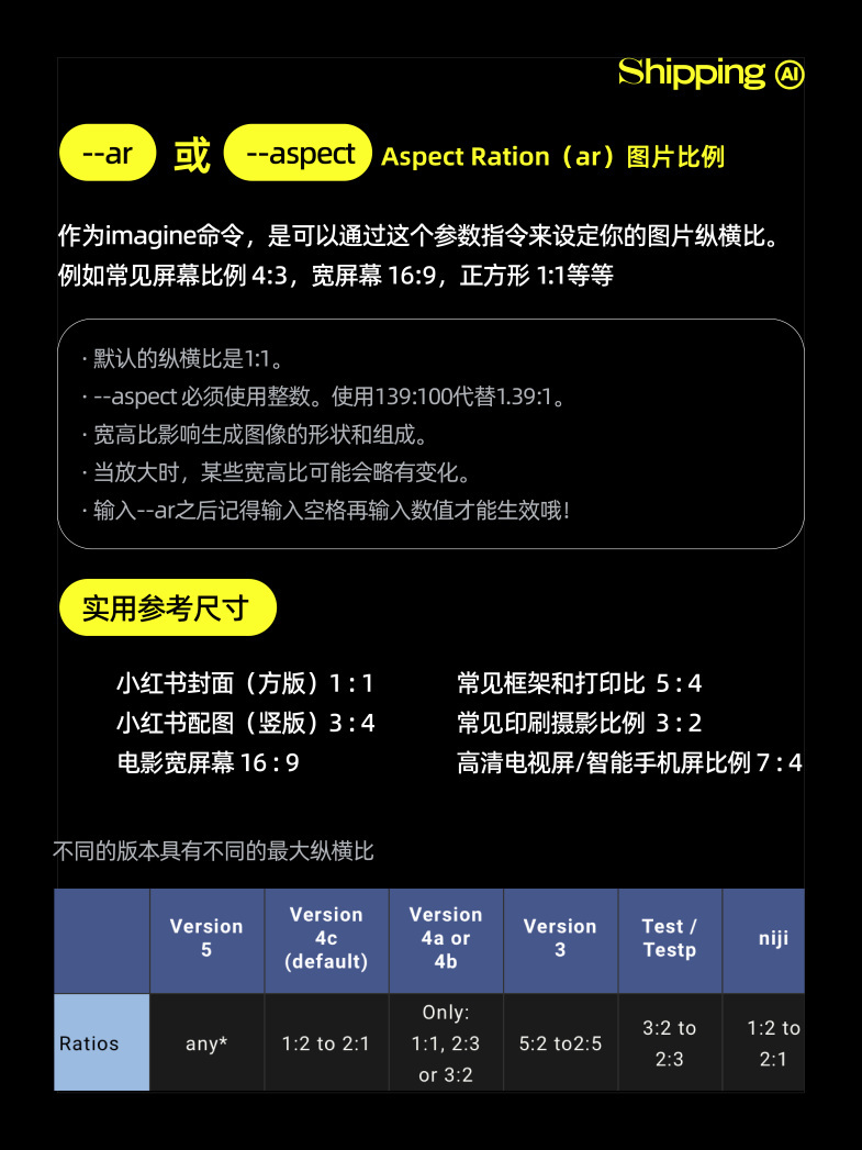 AI绘画· midjourney· 教程· 基础教学· ar参数· 比例设置· 工具流· ShippingAIGC