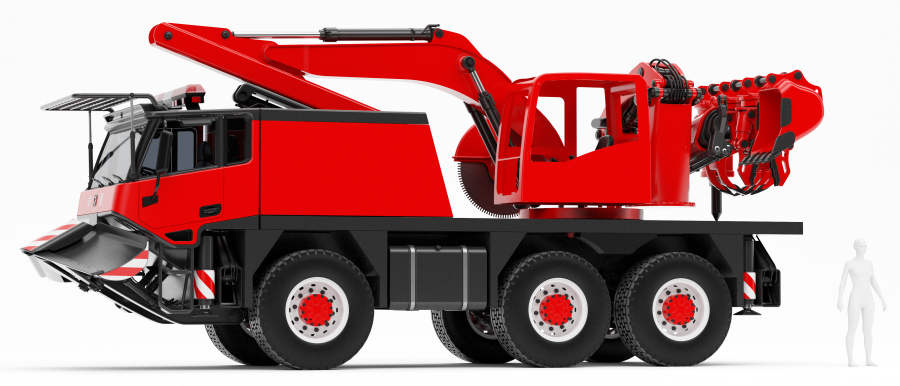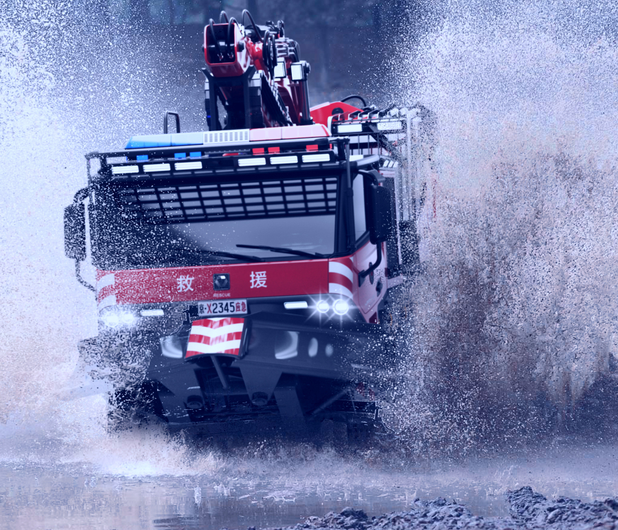 另外就是轮胎的选择,不能用普通的公路轮胎,因为不适合救灾的道路环境。我参考了卢森堡亚消防车的全地形轮胎。