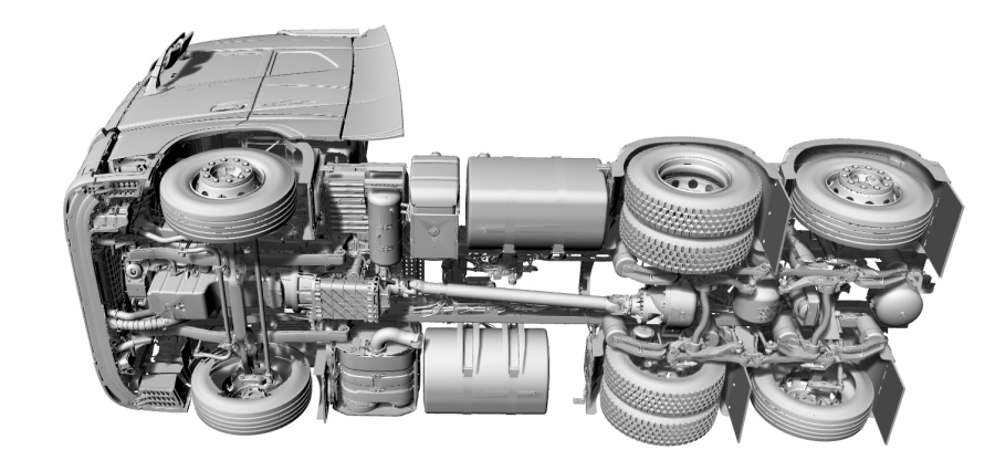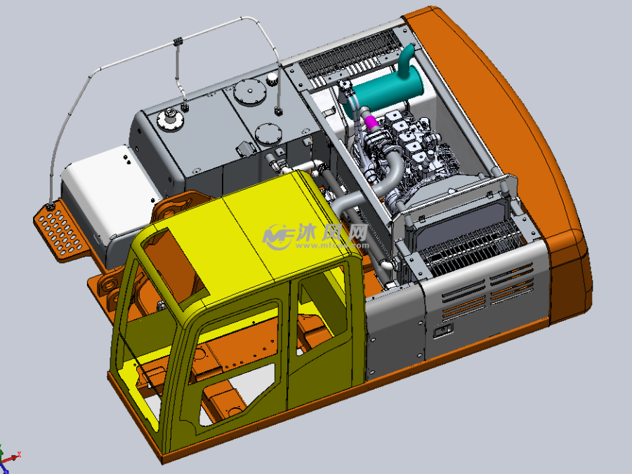 我加上了电动机,因为这车还是混合动力的,混合动力系统的布局书里有讲解,所以我知道怎么放。然后加上液压泵,液压阀,取力器,转盘电机,机油箱等等部件。越加越觉得崩溃。这叫,从堆积到放弃。