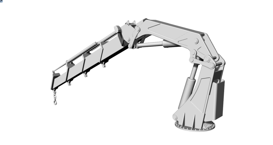 随车吊采用的是串联液压缸,每一级吊臂有一节单独的液压缸,所以看上去头部像是机关枪。把它的原理搞明白之后,我就能把这个随车吊组件重新做一遍,并做好液压管路的排布。