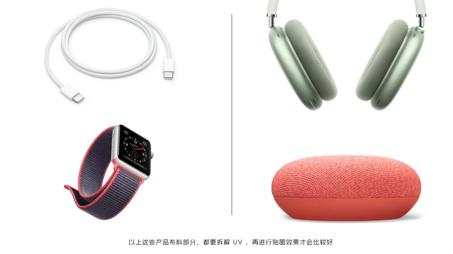 其实 ID 设计师需要拆解 UV 的情况并不多,大多数工业产品形状都很规整,没有复杂的肌理和图案,一般 Keyshot 自带的贴图投射方式都可以满足了,下面我找一些实际产品,说明一下那些情况我们需要拆解 UV 才有更好的效果。