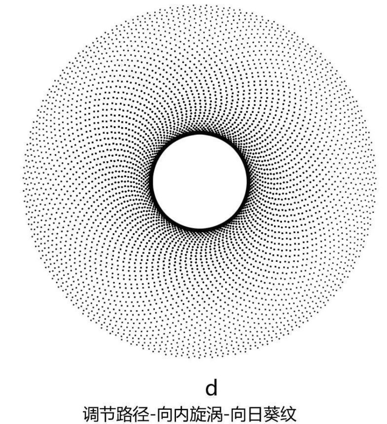 a.差异性:上文“向日葵旋转“数列不同于“圆心发射”和“同心圆收缩”,这些大规律决定了图案之间的不同,刚开始选着何种规律决定最根本差异。如图15所示,简单的几个圆点示意便界定了根本差异。