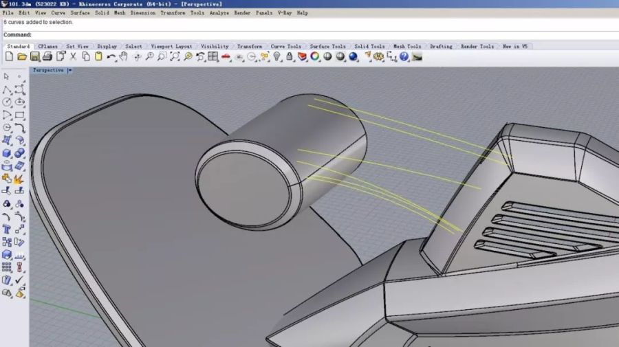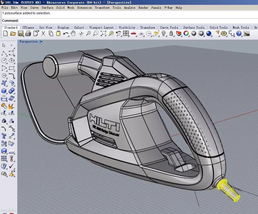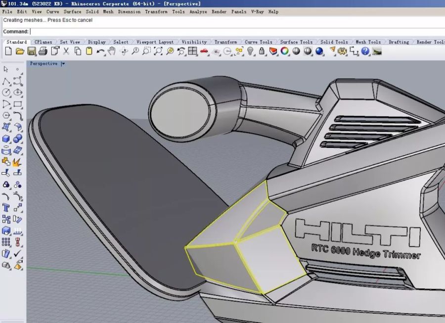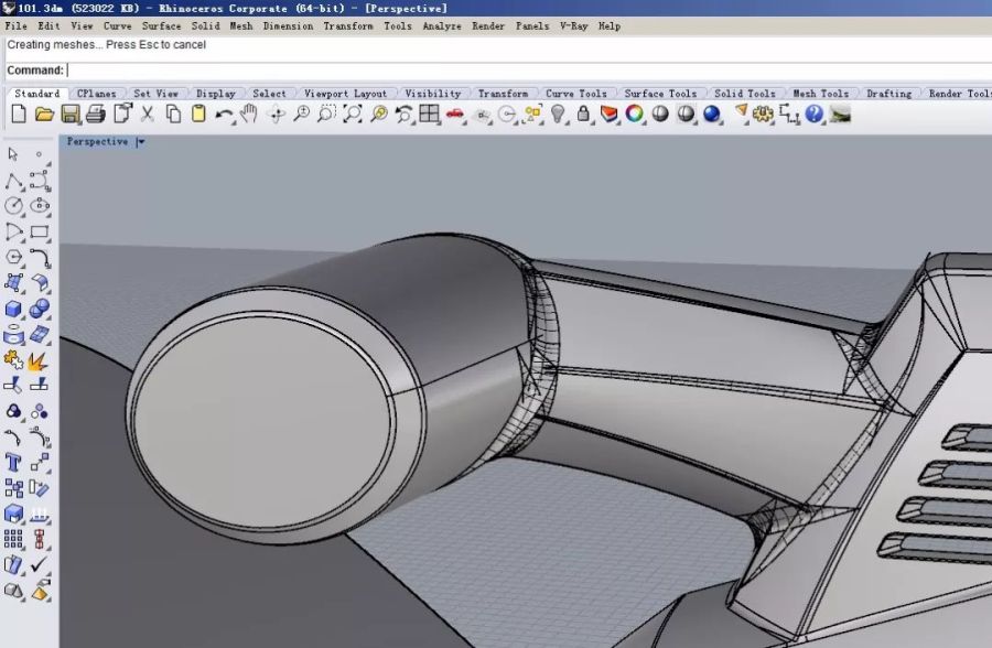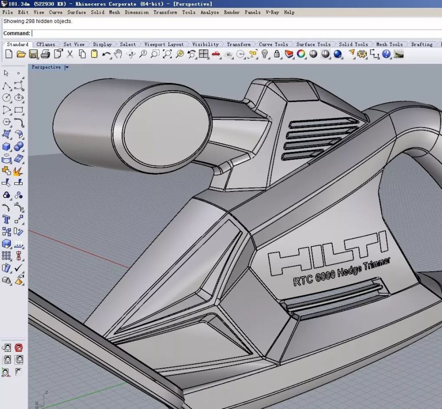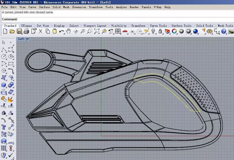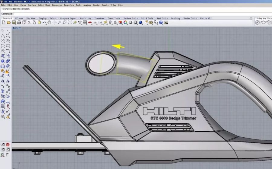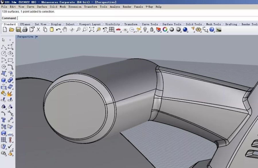要修改的部分都完成了,接下去我们把护板和机壳连接在一起。先把护板剪开,删掉一侧。(护板其实造型也很复杂,这里不改了。)