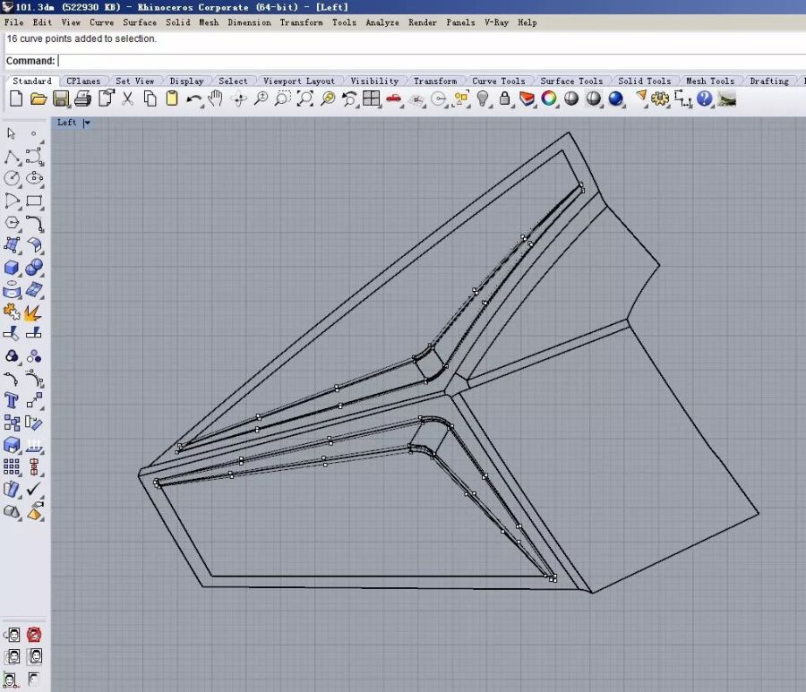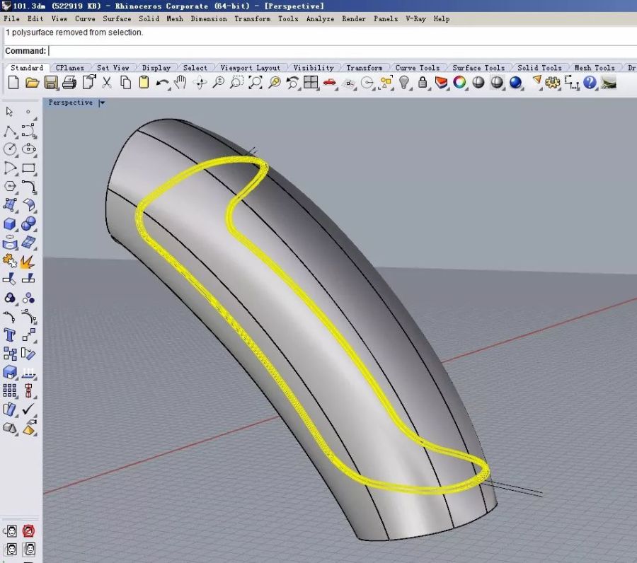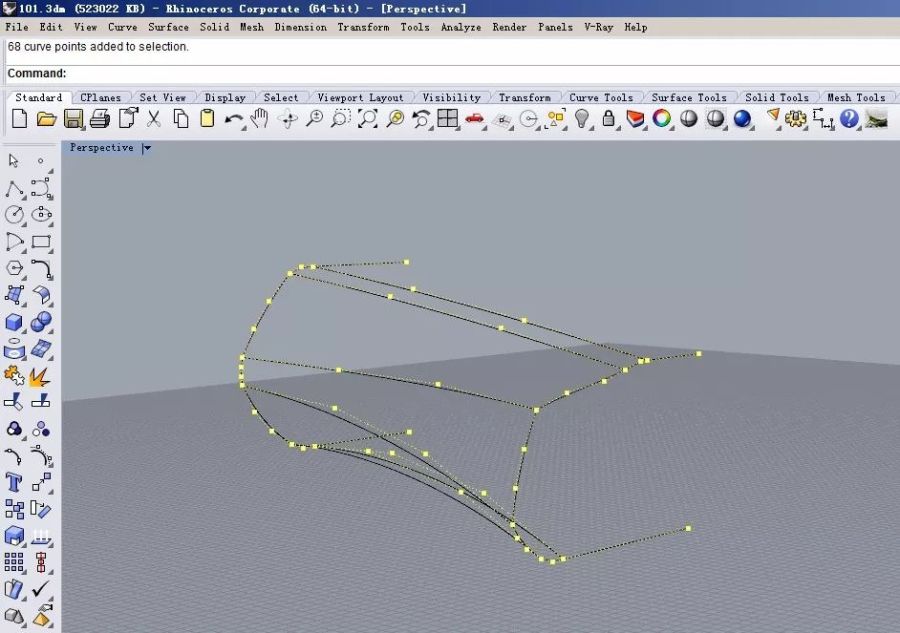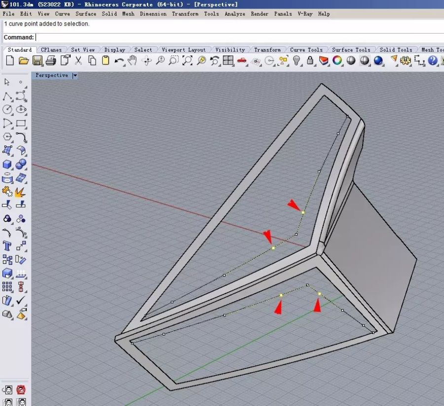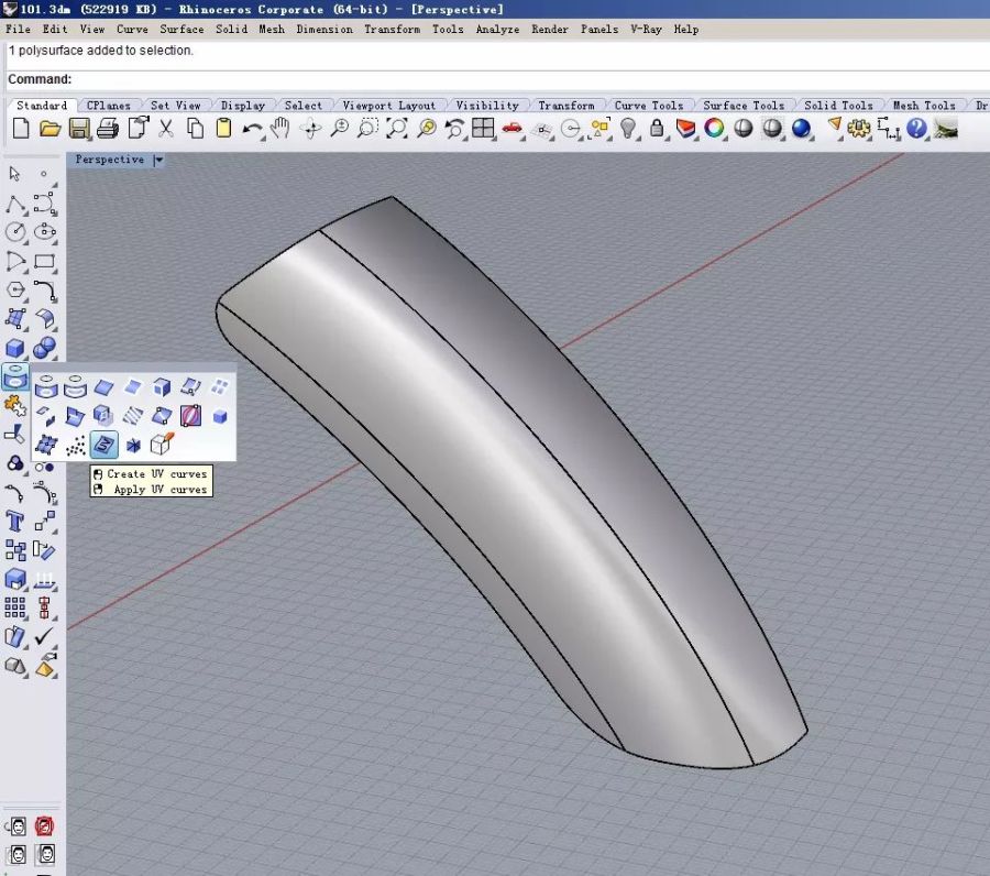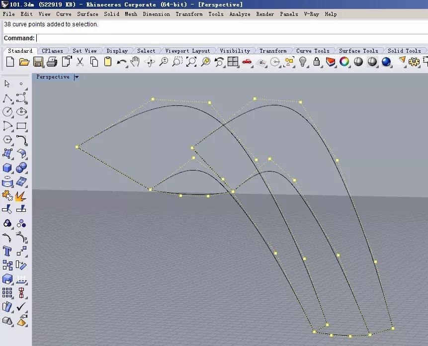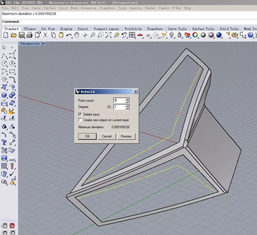 删掉不需要的部分,然后提取上图中的两个边缘线。并重建曲线修改为5个控制点。