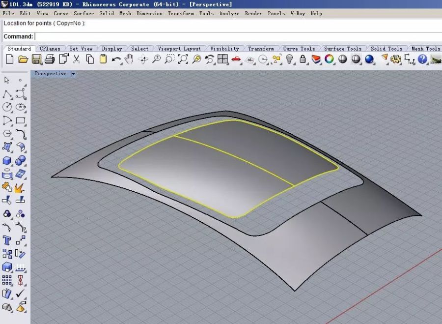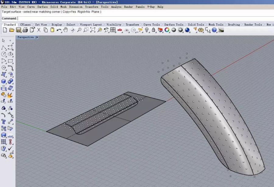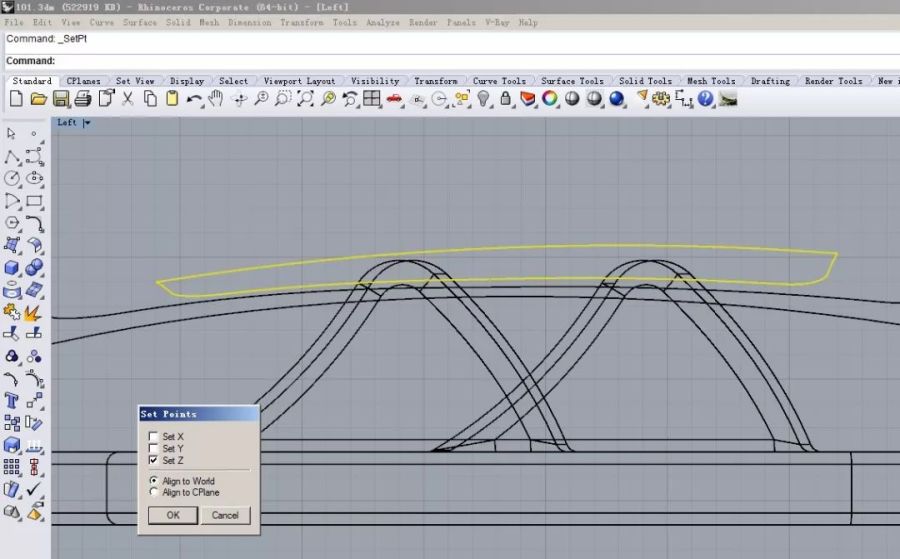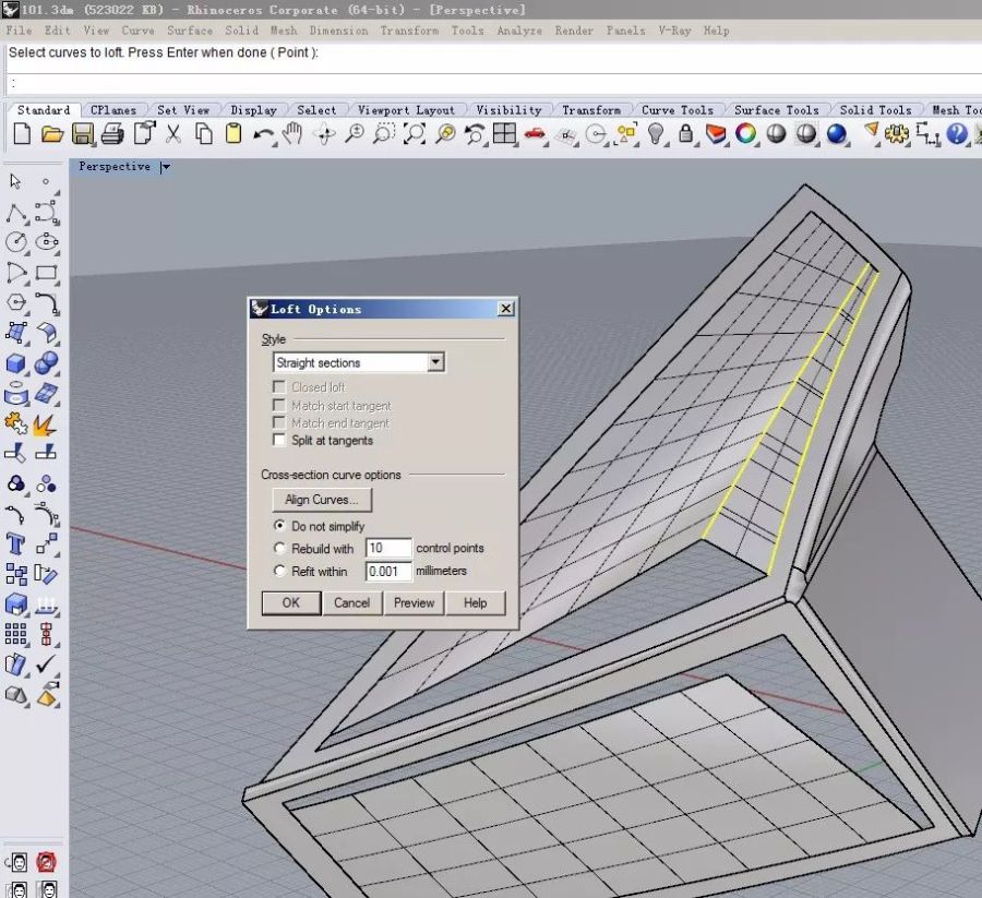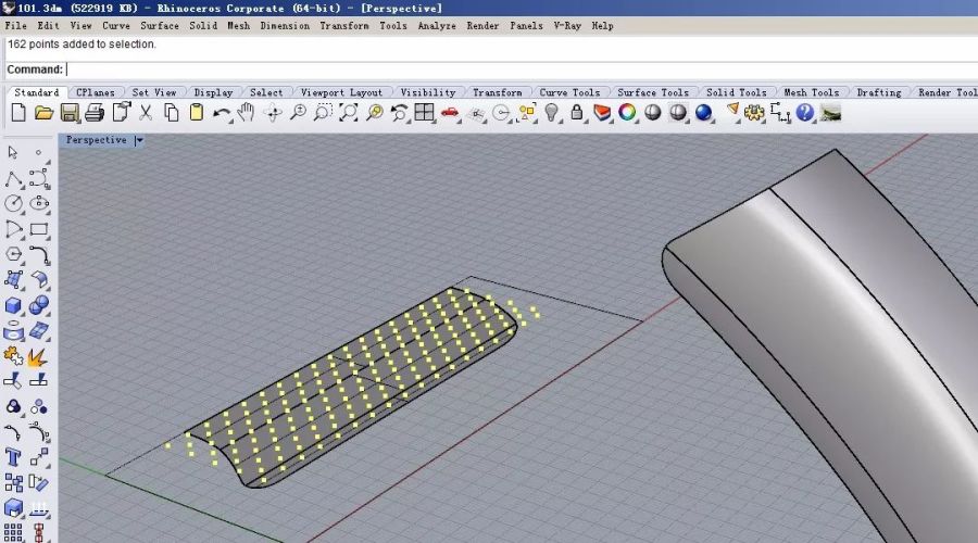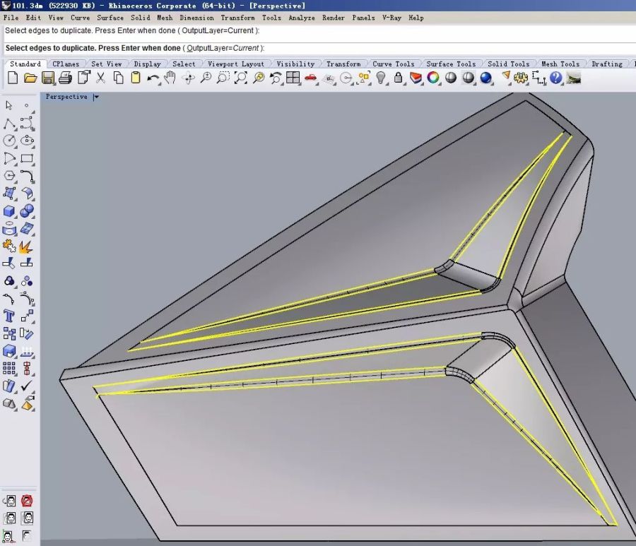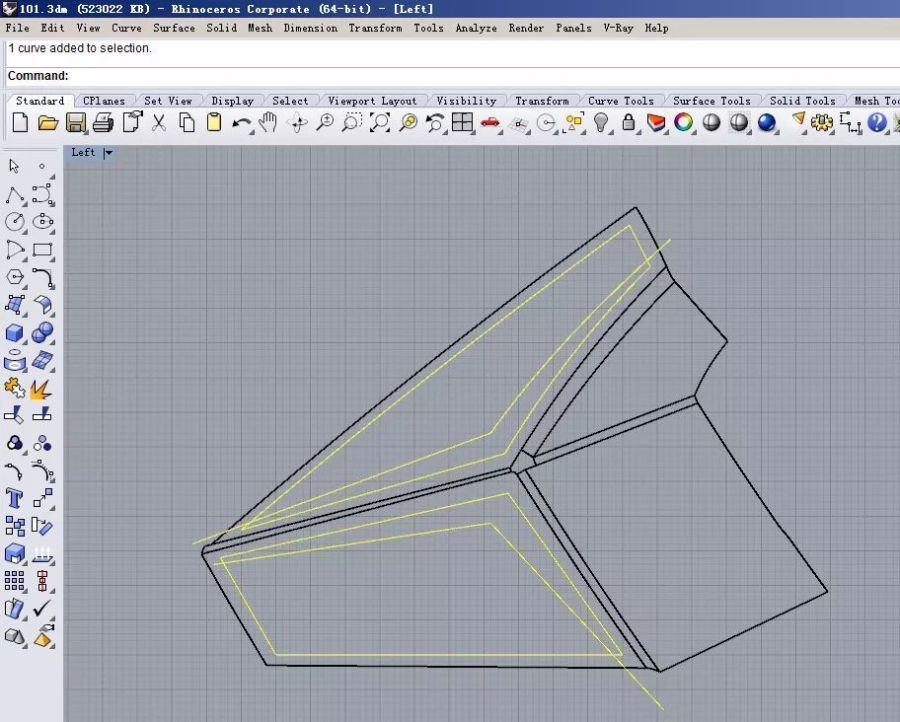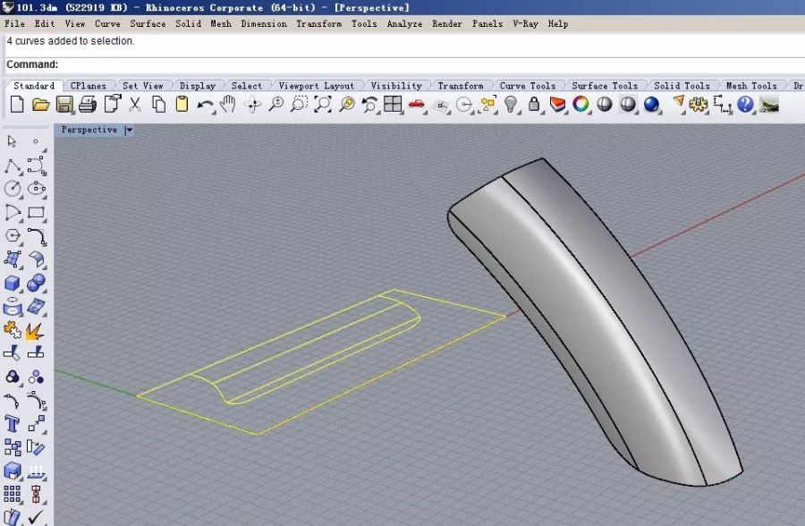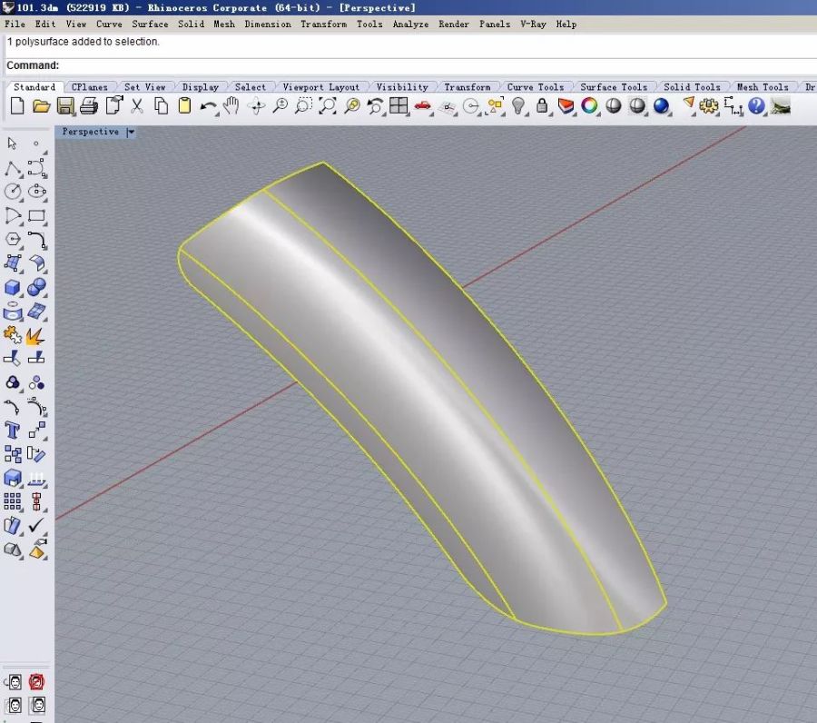 删掉不需要的部分,然后提取上图中的两个边缘线。并重建曲线修改为5个控制点。