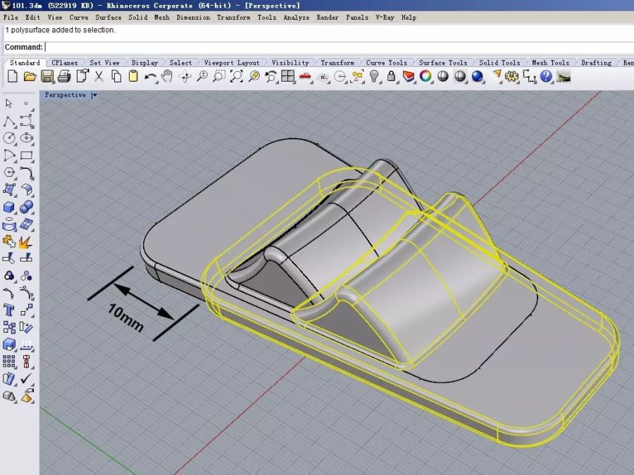 从顶视图中,绘制轮廓,把开关凸起的部分包裹进去。再外围再画一圈轮廓,用于切出造型。