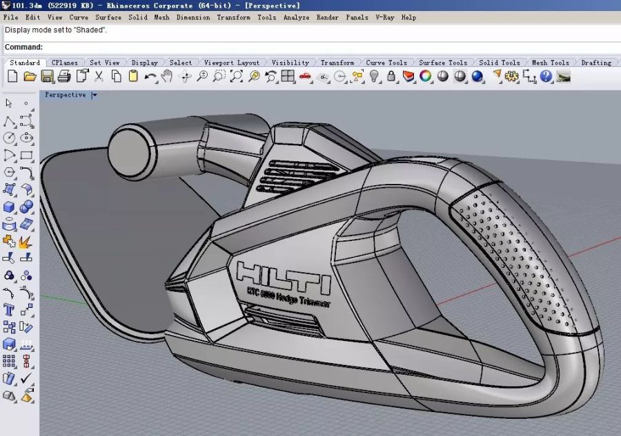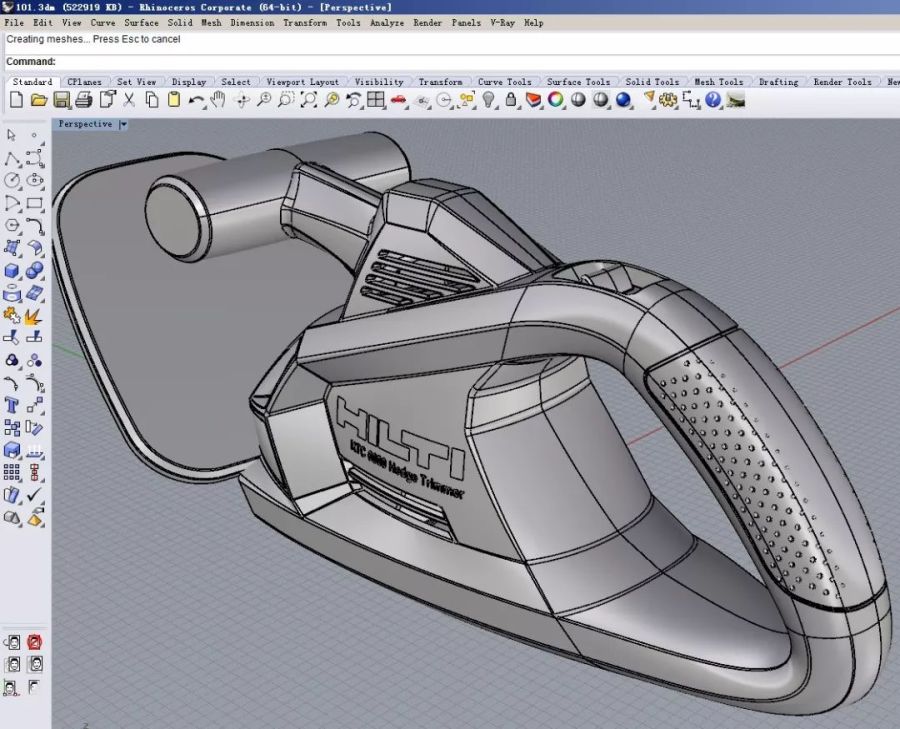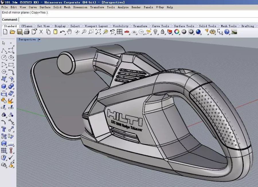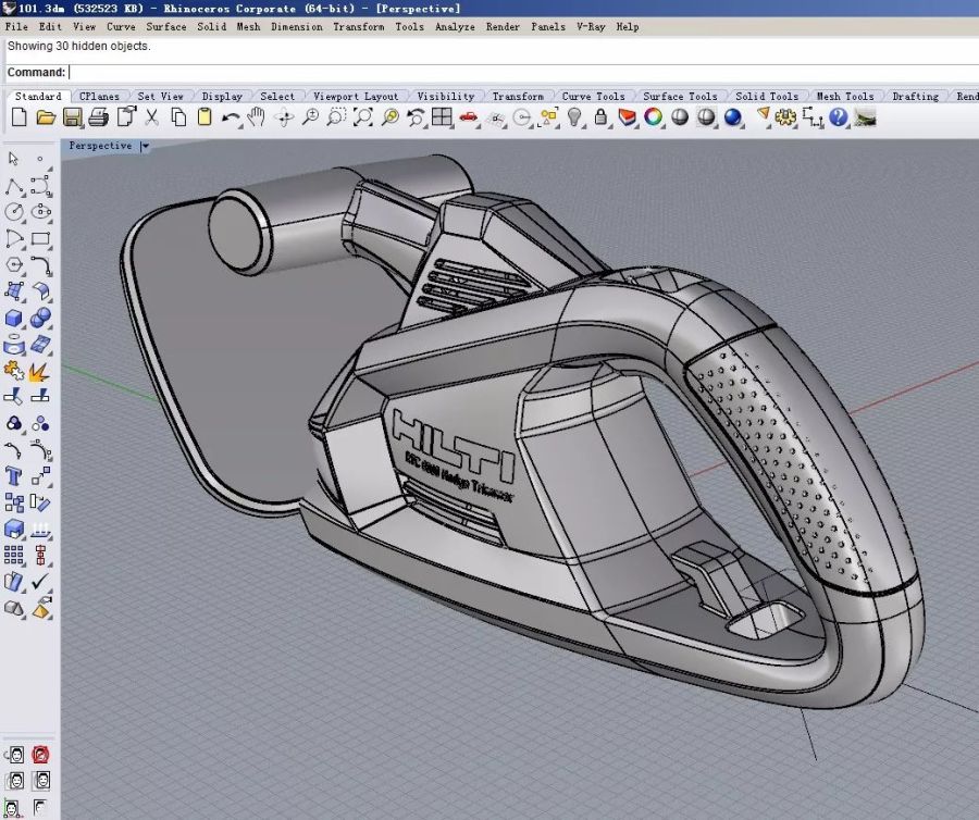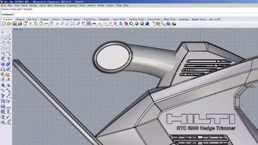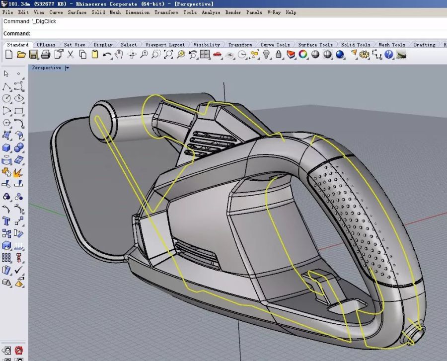 从外侧看,就形成了这样的逐渐消失的效果。在很多电动工具实物产品上,你也可以看到这样的现象。越靠近中轴线的凹陷,越不明显。如下图。