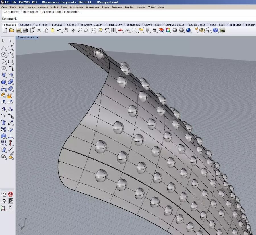 这样曲面上的小圆点位置就有了球体,但是还不能直接做布尔运算。