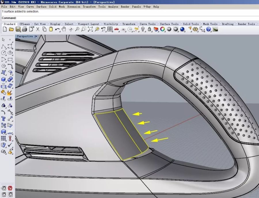 接下来要修改把手前方的面。把它往里推,也就是重建一下。