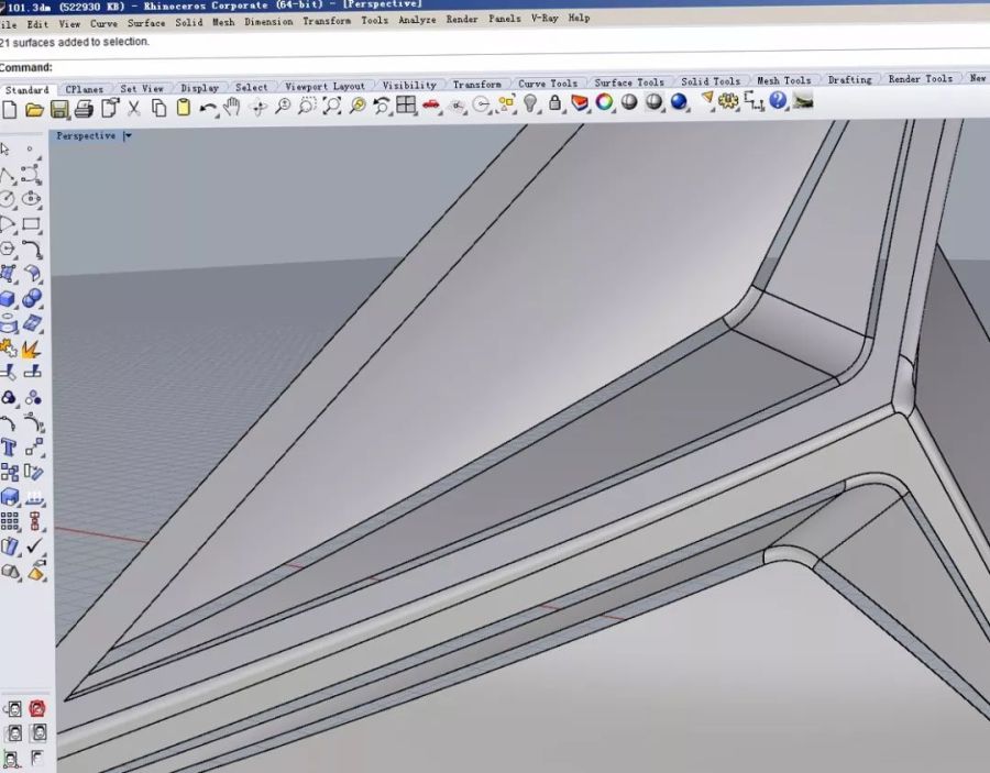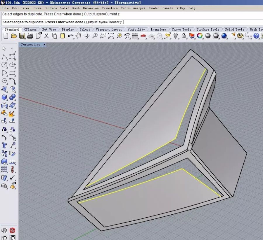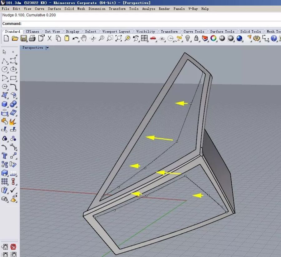 为了在渲染中看着真实,我们需要把模型从中间劈开,用宽度0.2mm的两条直线去剪,剪之前最好另存一下。下次修改可以用没有剪过的模型。