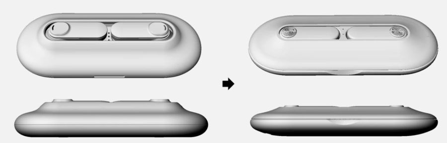 几何跑道图形,中间镂空设计,不仅可以观察耳机状态,也促使得机身的厚度更薄。而这个符号经过全球专利维护,成为品牌无形资产,基于此方便产品系列化和个性化。