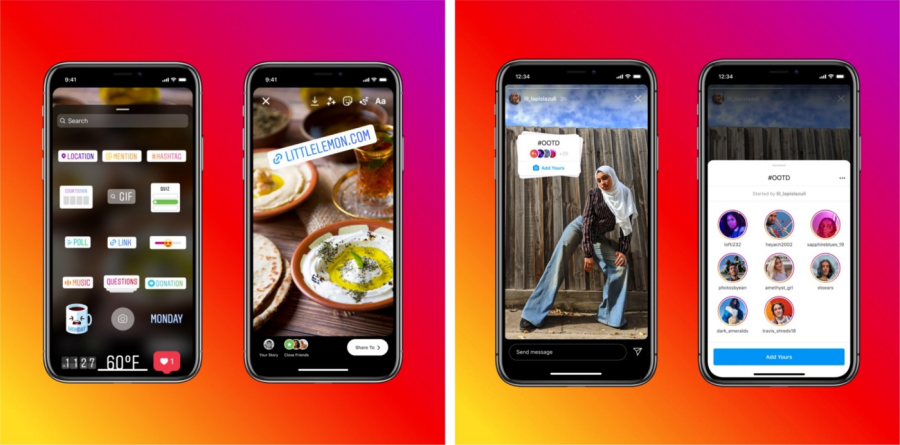 用户已经习惯了发布故事,为了迎合观众的反馈机制,故事的创作过程也增加着大量的修饰:包括添加民意调查、问题、提示、链接和倒计时。它最近的一个功能是“添加你的(Add yours)”,允许你将你的故事添加到一个公共相册,以便其他人在同一类别下找到。