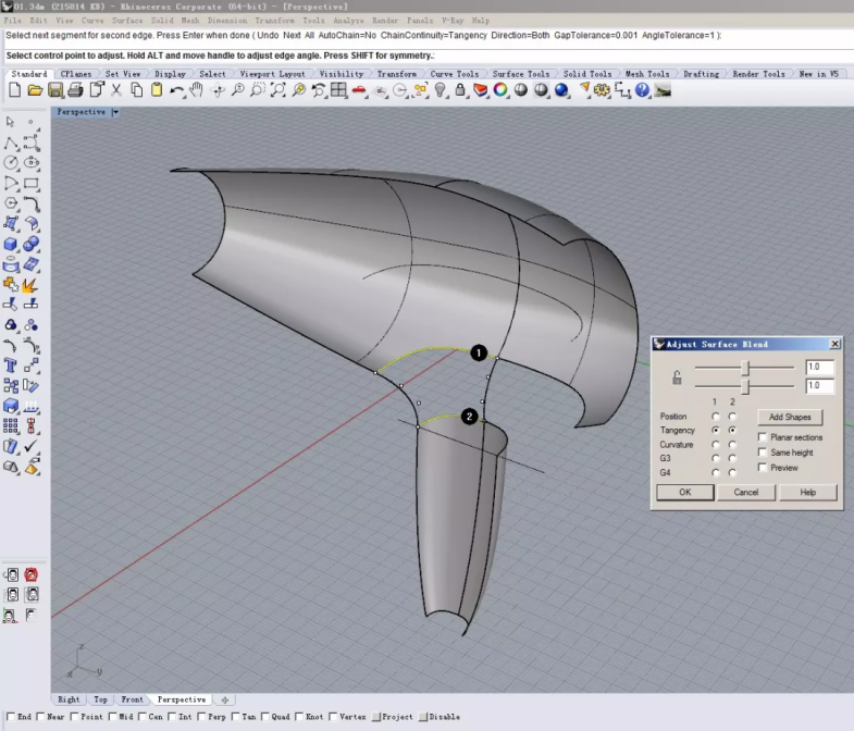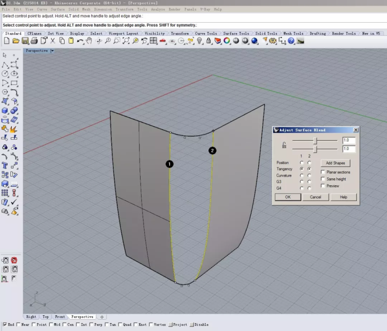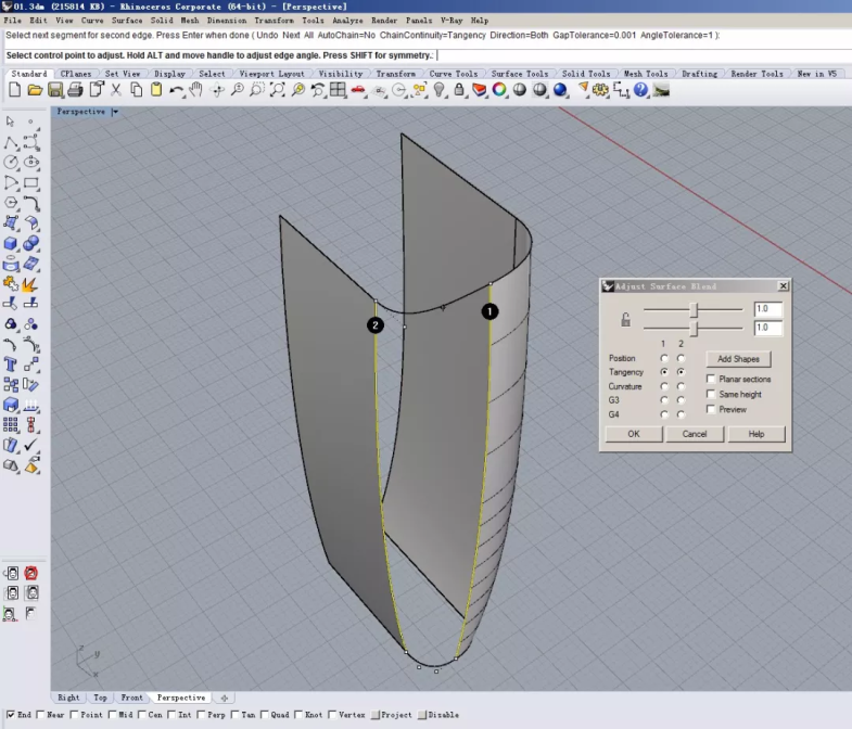 方法一样,可以自己在多个视图中微调曲率,达到满意的曲面。