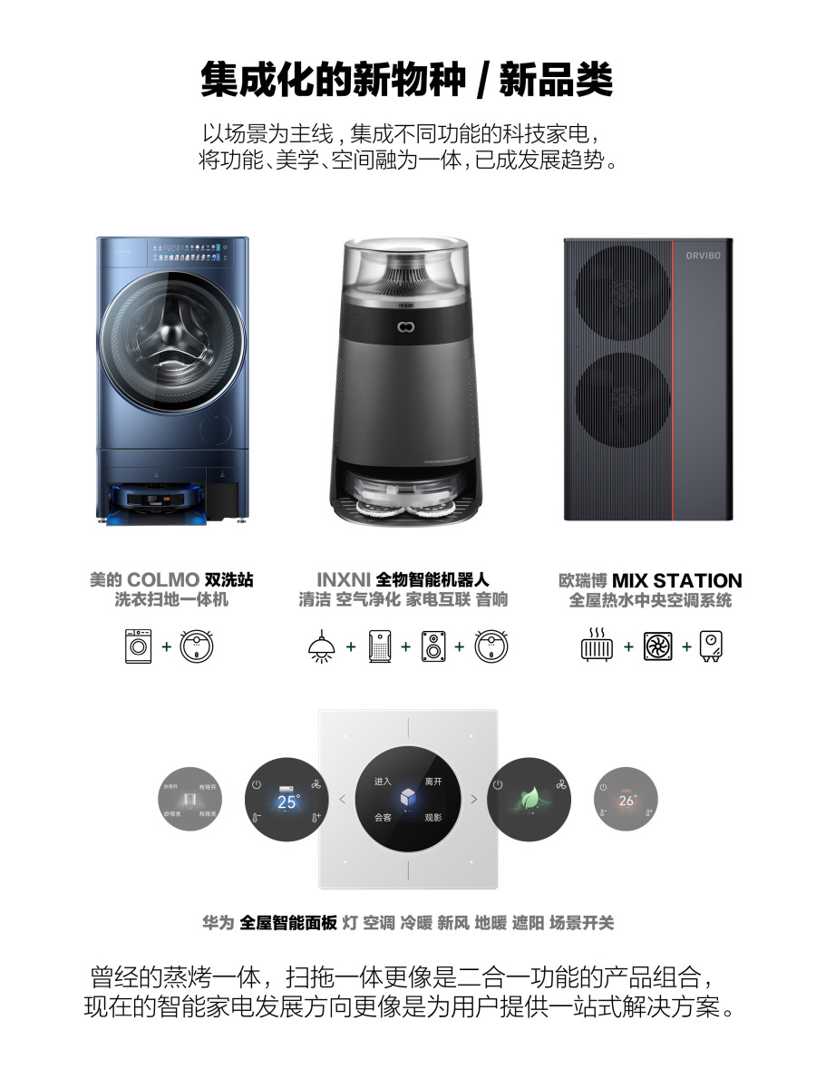 Colmo 双洗站这个有研究过 很有意思。 引用一下他们场景设计师的话 “家电数量越来越多,家庭空间越来越小?离人最近、最为沉浸的家庭空间,正是新场景的涌现之地。人们对家电的判断,从基础功能满足,转为新鲜、极致、多元的体验诉求。从工具到玩具,‘家电新物种’正在通过技术场景的深入创新,重塑数字时代家的交互方式与人的情绪价值。”