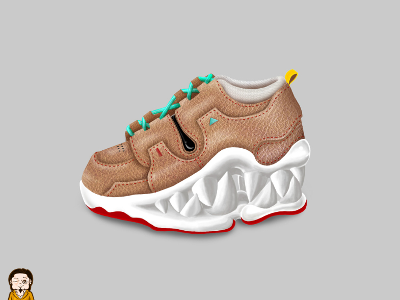 第一波中的稿件,一直很喜欢这个牙齿鞋底的感觉,于是更新了画风又做了一遍。