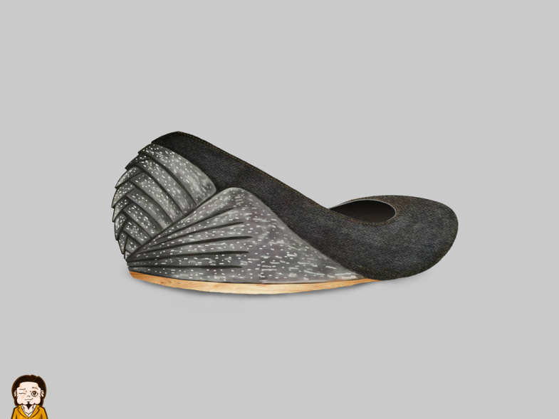 如图所见,一个模拟蜘蛛造型的鞋子。原本是临时涂在纸上的涂鸦,太写实的东西很容易弄拙所以一直都搁置在草稿上,最近《哈利波特》的八眼蜘蛛又火了,顺带着就画了出来。或许有人会觉着可爱,或许会有人觉着恶心,可又怎样呢,活出自己的样子随别人怎么说。