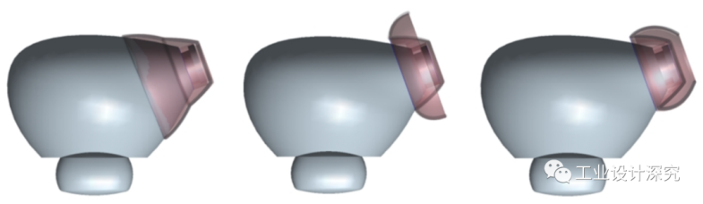 作品 3,名称是:一种可以固定不同人耳的耳机设计。一句话描述:耳机设置了四个卡扣,可以变长变短,这样在耳朵内的固定就变得可以调节, 同时也会适应不同大小的耳轮廓。如图 9。