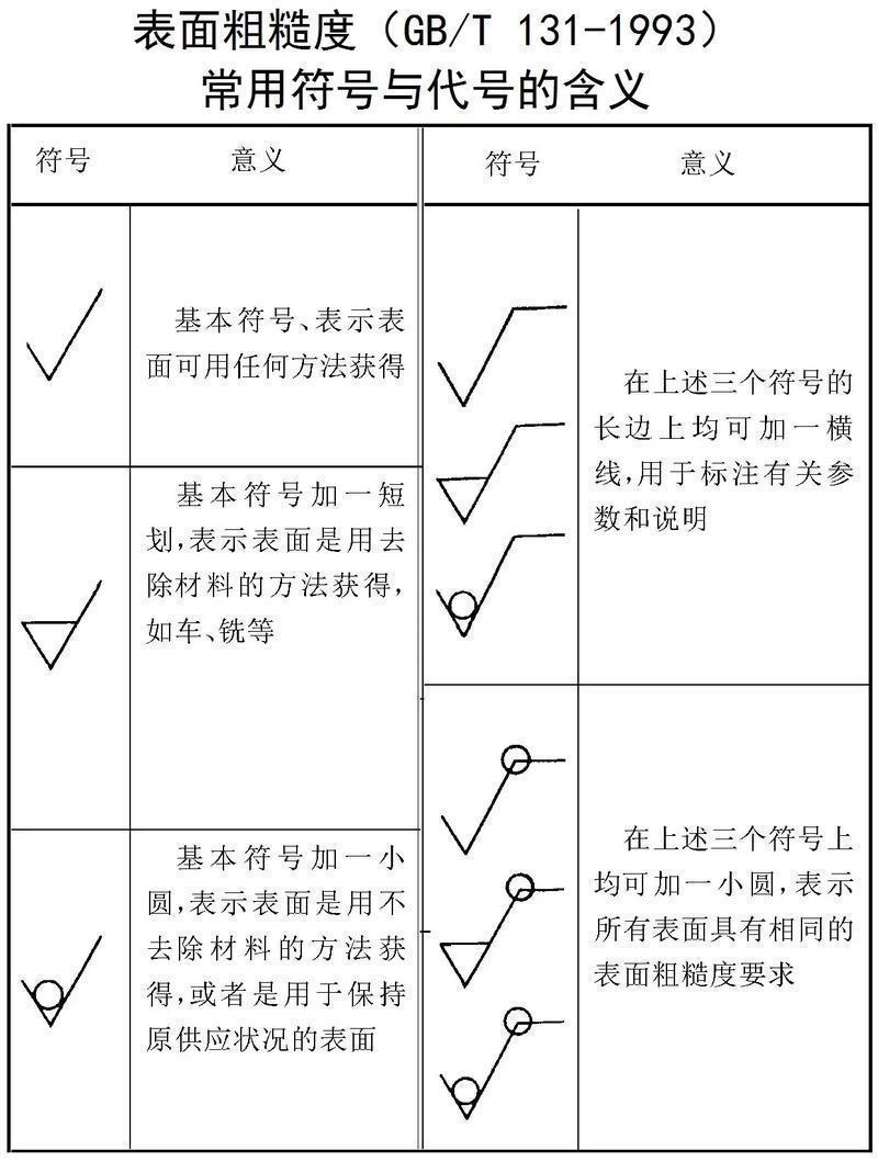 明显可见刀痕:Ra100、Ra50、Ra25。加工方式:粗车、粗刨、粗铣、钻孔