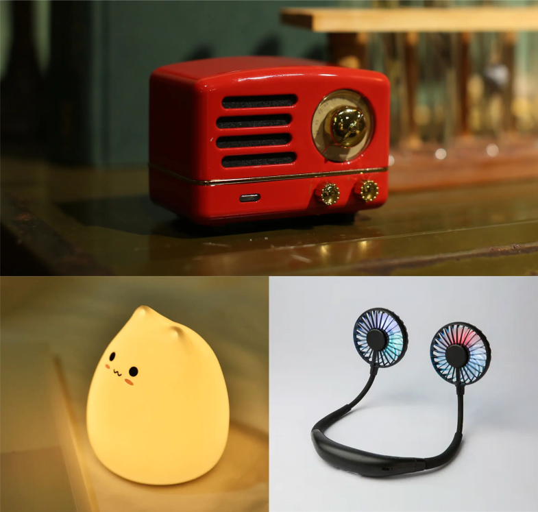这些产品大家应该都见过,都是这几年卖的比较好的产品,就已这些快消品为例,这类产品都是100多年前的产品项目了,直到现在仍然是活跃在市场当中,在过去音响是获取无线信息的一种工具,灯是照明的工具,风扇是散热工具,直到现在这种实用的工具慢慢变成了一种时尚品,消费品,是会过时的会重复消费的产品,从手感上,质感上,灵感上都不是过往的产品能相提并论的,这不只是造型的改变,也是材料和工艺上的改变。