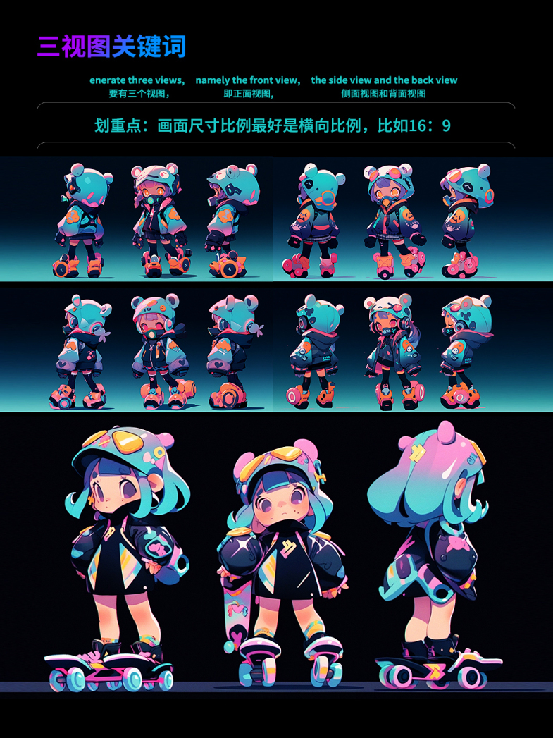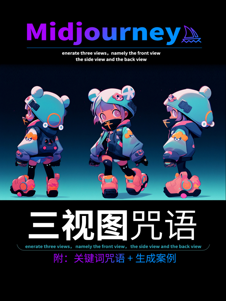 midjourney等AI都能直接生成人物、产品、IP形象的三视图了
