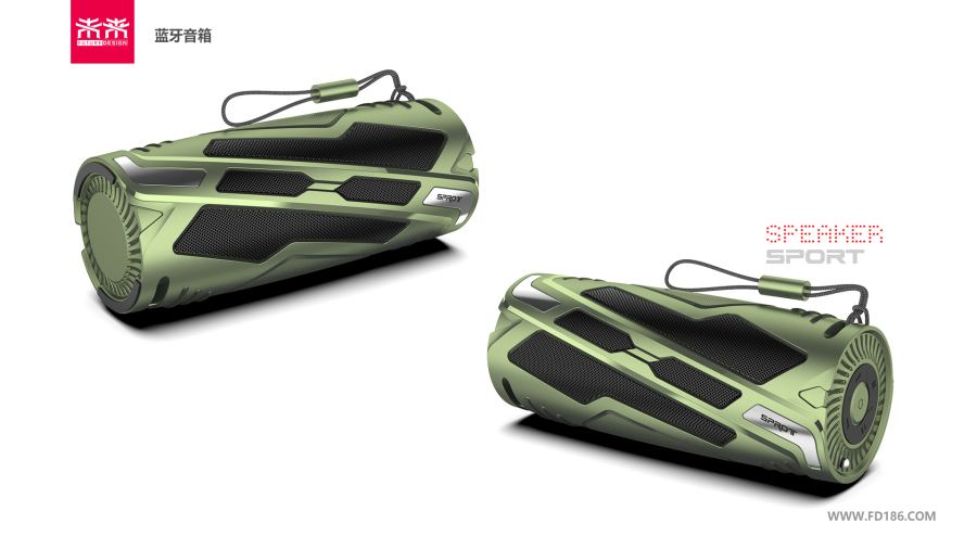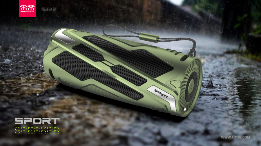 未来设计团队根据环境大胆分析爱好运动一族可能会比较喜欢听音乐,因此设计了一款跟运动风格相契合的蓝牙音箱。此款蓝牙音箱机身呈现圆柱体,采用墨绿色为主色调,增加产品的活力。这一款蓝牙音箱适合的场景非常广泛,可以用在健身房、户外、卧室。适用人群也很广泛,适用于爱运动的青年及老年。
