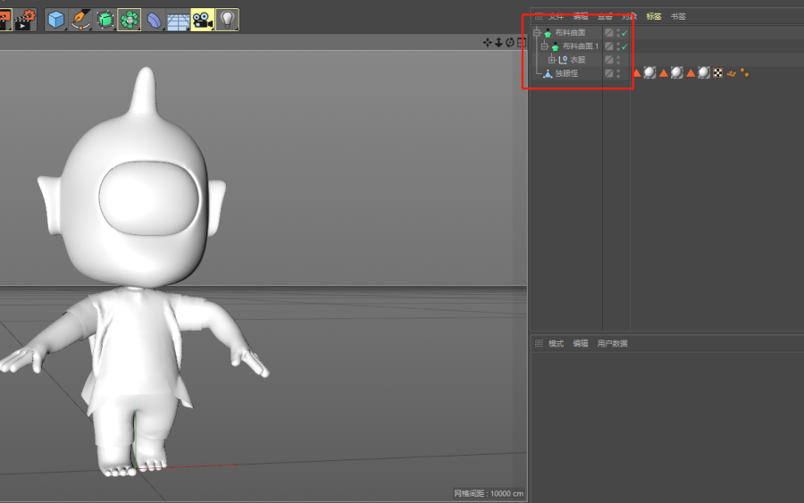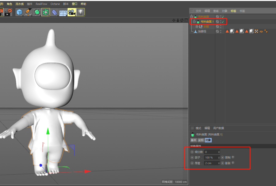 在C4D中打开刚才在Marvelous Designer中保存的OBJ格式文件。分别给模型和衣服命名并且单独分组。