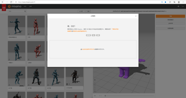 点击橙色字的(在此处选择字符文件),然后上传在C4D保存的FBX格式的文件。