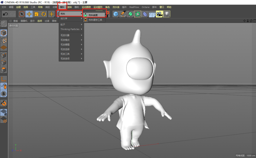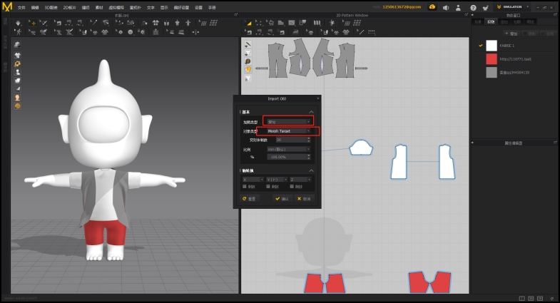 打开Marvelous Designer,导入一开始在C4D保存的OBJ格式的模型(就是T姿势,还未调整姿势的模型)。