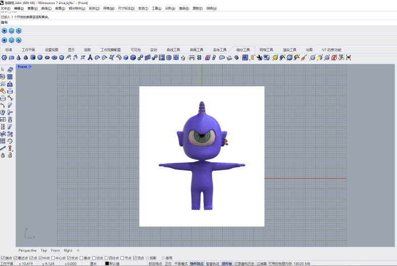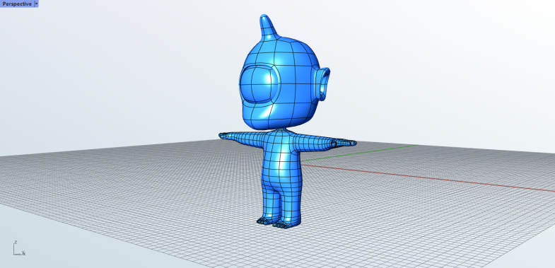首先前期可以找一些三维人物的参考或者是自己构思一个形象画草图,然后打开犀牛7(必须是犀牛7版本才可做细分建模)。这里我用我之前做的IP做参考。