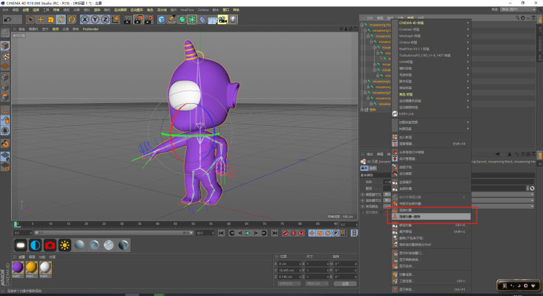 最后调整好姿势以后,ctrl+A选择所有物体然后右键选择(连接对象+删除),操作完后变成这种透明状的。